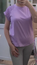 Девочки, берите футболку не пожалеетеКачество хорошее, ткань плотная, швы ровныеМне очень понравилась.На свои ОГ 2 и ОТ 75 брала размер М пойдет и на чуть большие размеры.